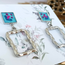 ◼️ Un bijou audacieux et contemporain – Ces boucles d'oreilles pendantes associent deux carrés stylisés, ornés d'une broderie main vibrante où se mêlent bleu électrique et fuchsia éclatant. Un mélange résolument moderne pour un look qui ose !